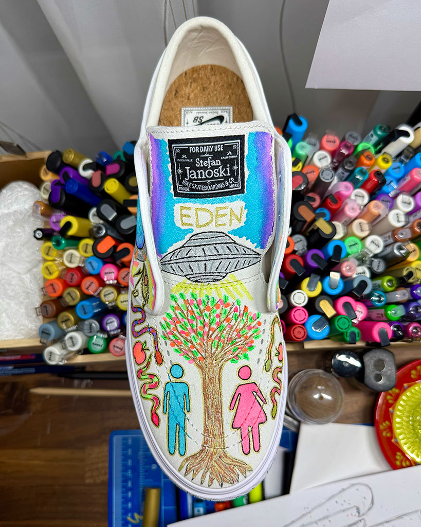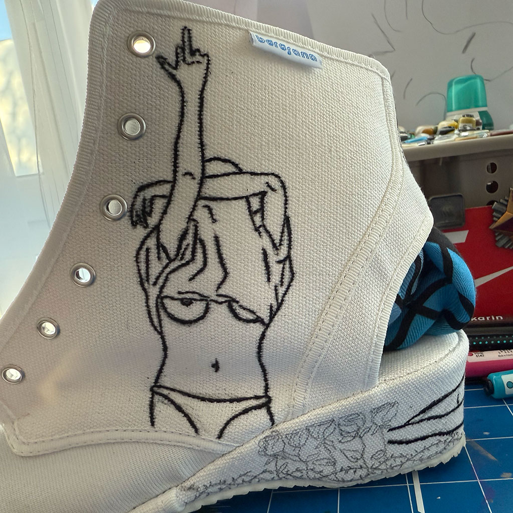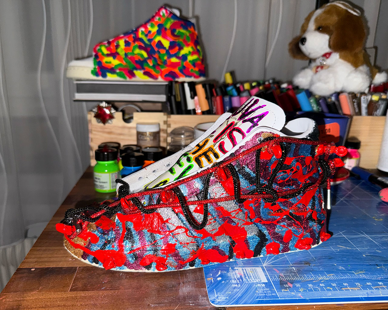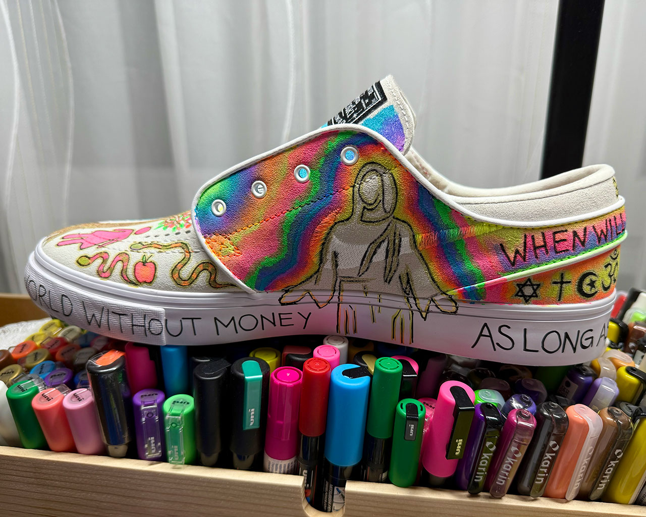 I know your brand guardians an lawyers would love to tear me to pieces. I don't want to drag you through the mud. I just like your products. Some people smear paint on house walls. Others spray their spiritual ejaculation on canvases. For me, it's sneakers. Think about it, take a second.